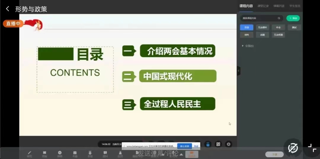 此次《形势与政策》课以“线下授课+线上直播”形式开展,泥巴影院 21级和22级学生于泥巴影院 一楼报告厅线下集中观看,其他年级学生在宿舍、教室以及实习单位等自主线上观看直播或回放。