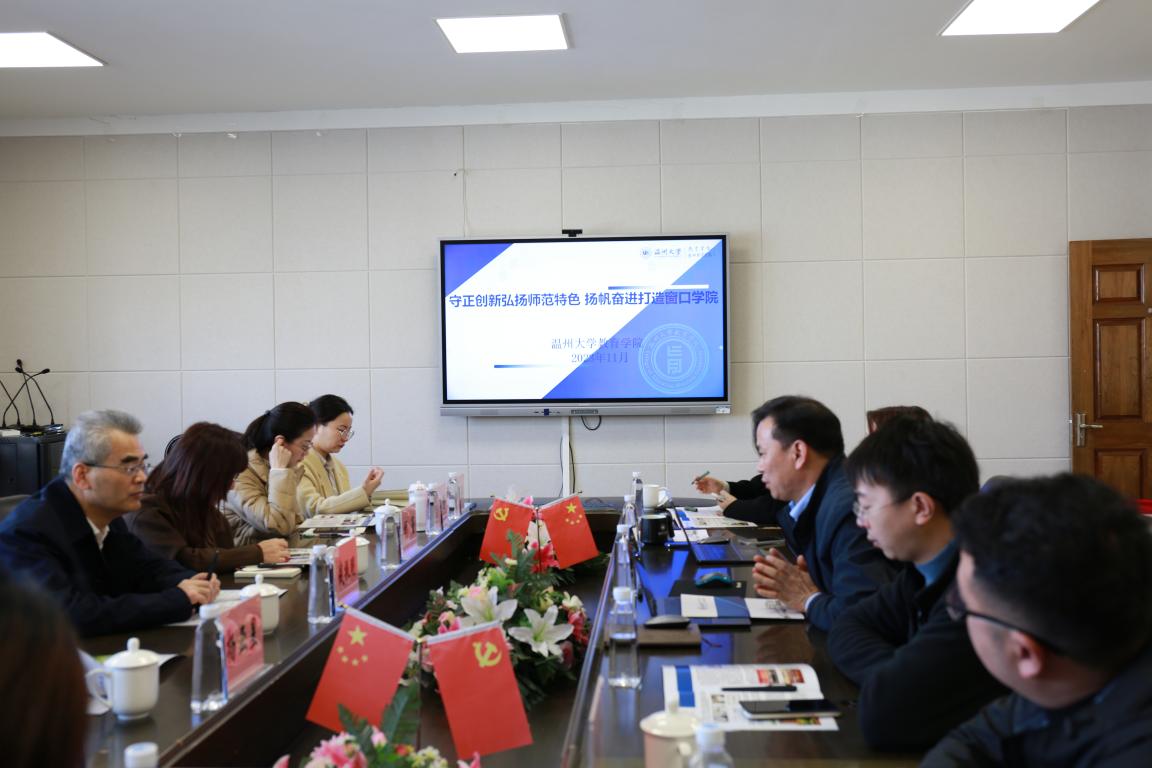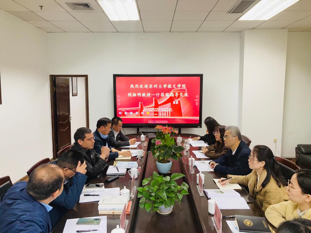 在研学师生在各场馆参观学习的同时,苏州大学相关专家在何毅书记的陪同下还来到浙江省人文社科重点基地—泥巴影院 温州人经济研究中心考察调研,与我校商学院有关专家交流研讨“温州模式”与“苏南模式”的异同,探寻温州经济社会发展的“密码”。