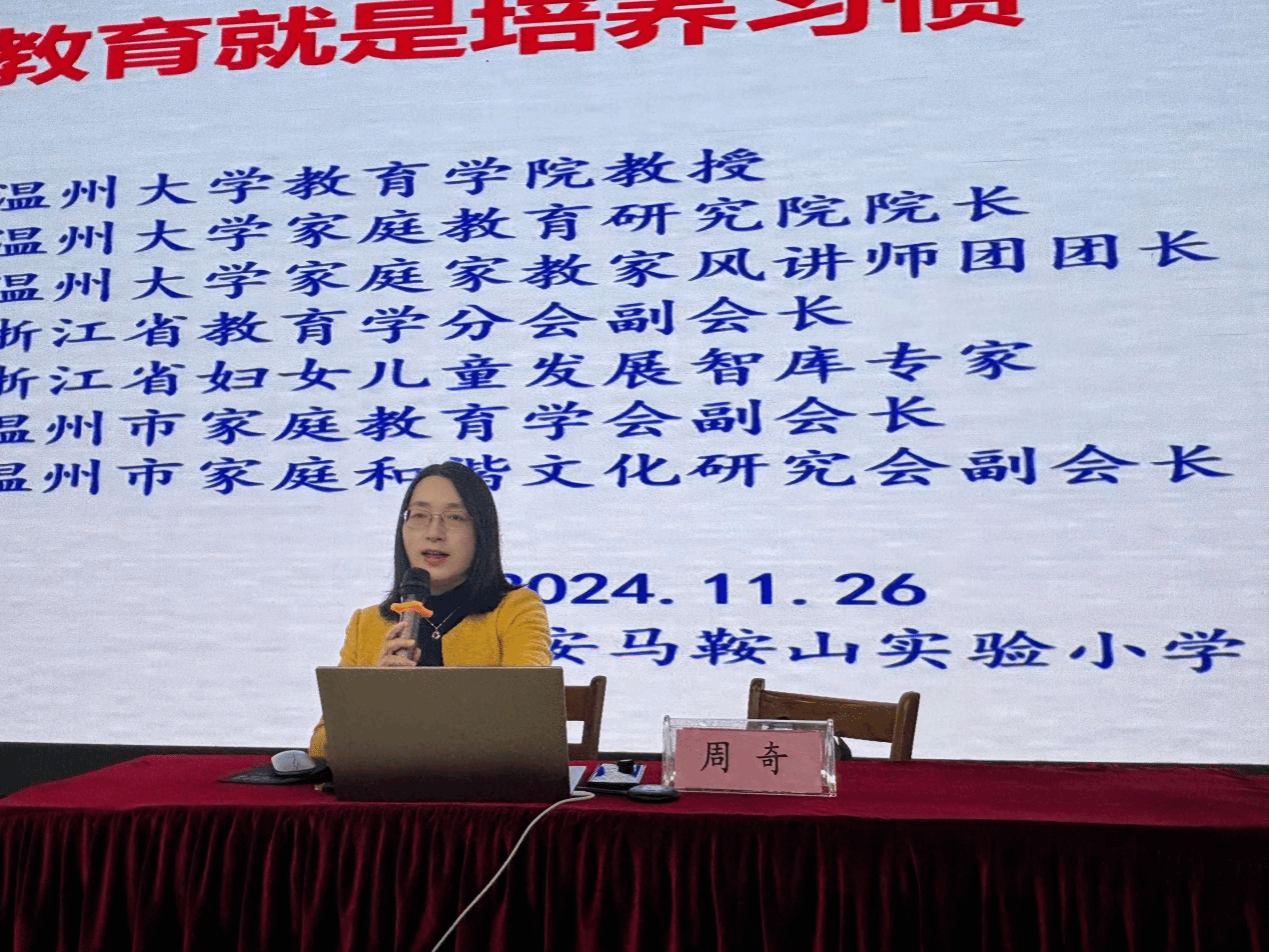 11月26、27日,泥巴影院 周奇教授应邀为瑞安市马鞍山实验小学一二年级与三四年级学生家长分别开设《教育就是培养习惯》、《做好孩子的第一任老师》家庭教育讲座。