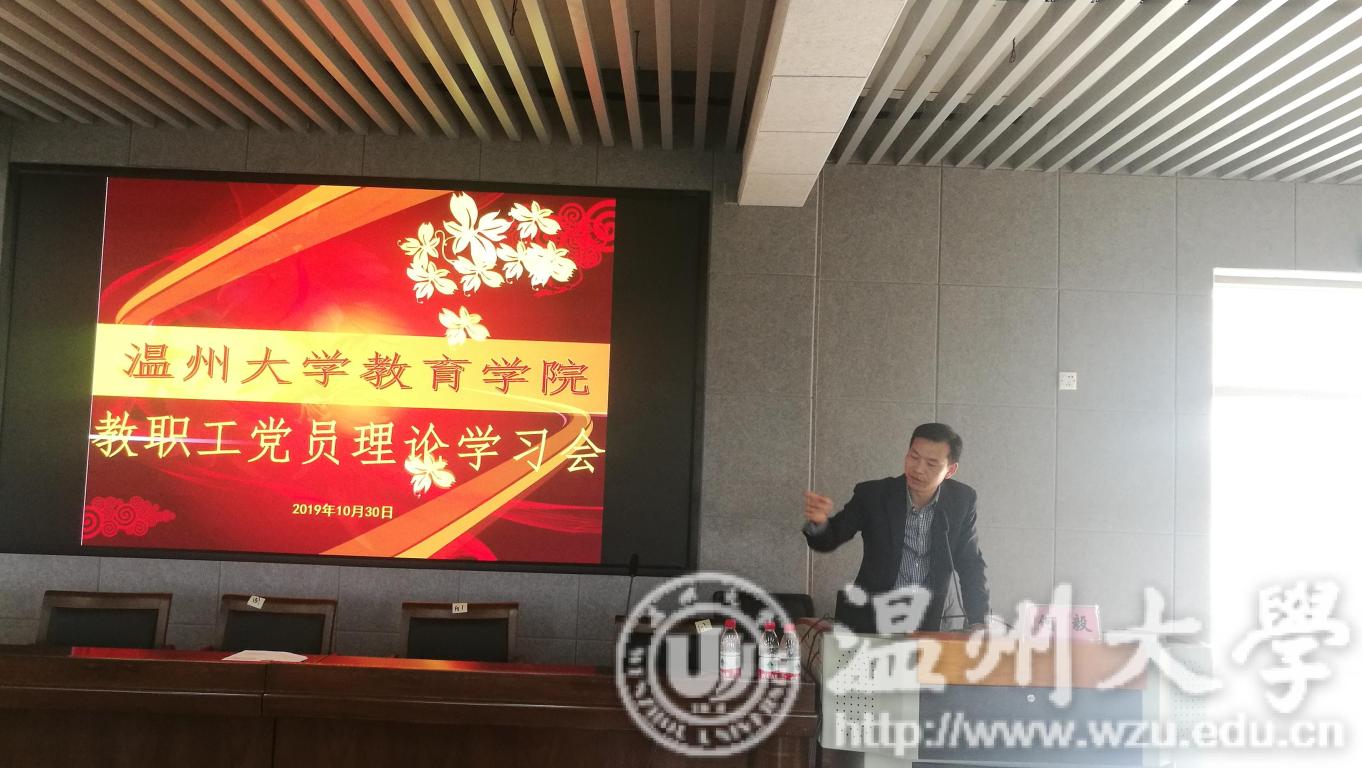 10月30日下午,泥巴影院 “不忘初心、牢记使命”主题教育第二次全院理论学习扩大会在泥巴影院 9C301举行,学院全体教工党员参加大会,党委书记何毅为全院教工党员讲专题党课,校主题教育巡回督导组成员、学工部副部长张朝辉到会指导。