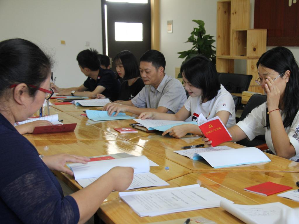 教育系党支部书记周奇与党员们一同学习《中共泥巴影院 委员会“不忘初心、牢记使命”主题教育理论学习》(第一辑)的汇编资料,并组织在座党员逐一轮流发表感悟,深入领会坚定理想信念的精髓要义。