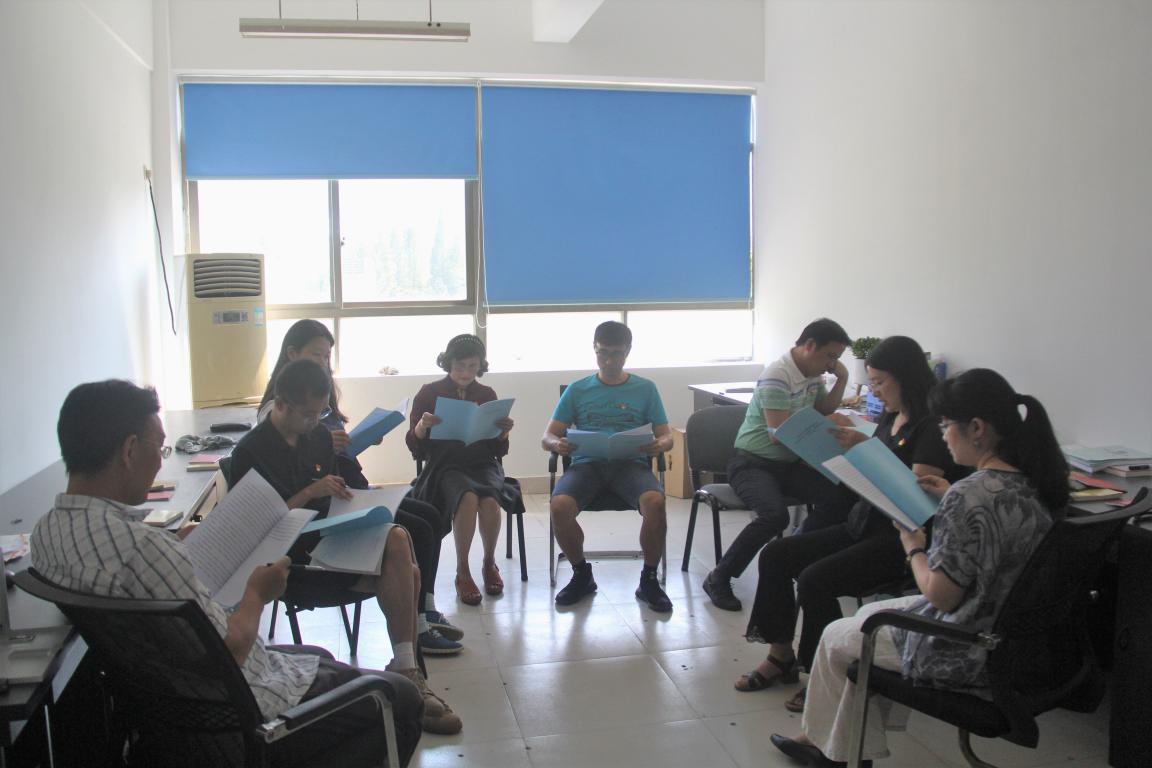 学前教育系党支部的教工党员围坐一起,对学院编印的学习材料组织精读,支部负责人要求教工党员深入领会学习教育的重要意义,自觉对照“守初心 担使命 找差距 抓落实”的总体要求,把学习教育扎扎实实落实好。