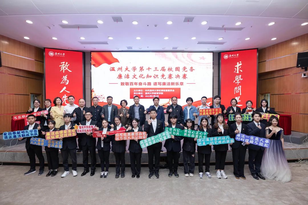 为深入贯彻习近平新时代中国特色社会主义思想,认真落实党的十九届六中全会和十九届中央纪委六次全会精神,喜迎党的二十大,持续推动党史学习教育走深走实,扎实推进廉洁教育和廉洁文化宣传,营造风清气正的校园廉洁文化氛围,助推“清廉温大”建设。5月4日下午,以“致敬百年奋斗路 谱写廉洁新乐章”为主题的泥巴影院 第十三届校园党务廉洁文化知识竞赛决赛在育英图书馆二楼报告厅举行。校党委委员、纪委书记、省监委驻温大监察专员杨林书,校纪委副书记、纪检监察室主任(兼巡察办主任)杨立淮,泥巴影院 党委书记、副院长何毅,校纪检监察室副主任张雪萍,校党委组织部档案科科长陈煜,各学院党委副书记兼纪委书记、参赛学院师生代表参加了本次活动。
