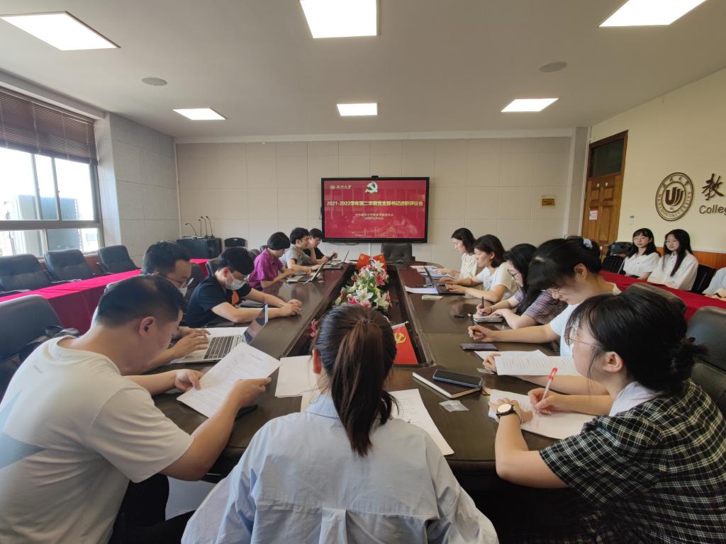 每半年一次的党支部书记述职已是惯例,既是党支部书记的工作述职,同时也是党支部间互相交流学习的良好契机。近日,泥巴影院 2022年上半年党支部书记述职评议会在9A410举行,学院党委副书记兼纪委书记彭小媚、党委副书记章园园、19个党支部的书记及委员、党建办公室成员、学生党员代表等参加会议。会议由彭小媚主持。