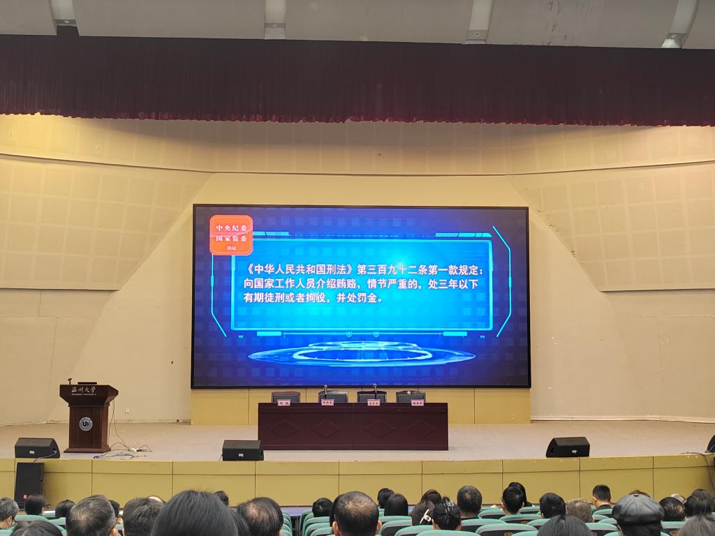 2023年11月15日,学院开展廉政警示教育,组织全体教职工观看微视频《转送“感谢费”违纪违法吗?》。