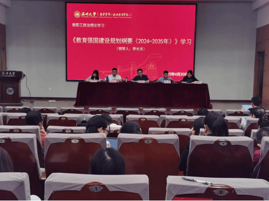 2025年4月30日,学院开展教职工理论学习。院长李长吉领学《教育强国建设规划纲要(2024-2035)》。李院长立足学院发展、结合学院实际从“时代之问”“行动之钥”“奋进之策”三个维度深入展开解读。他强调,教育强国建设是一场接力跑,需要我们以“钉钉子”精神一锤接着一锤敲,全体教师要以《纲要》为行动纲领,将学习成果转化为“为党育人、为国育才”的生动实践,为建成教育强国、实现民族复兴贡献智慧与力量。