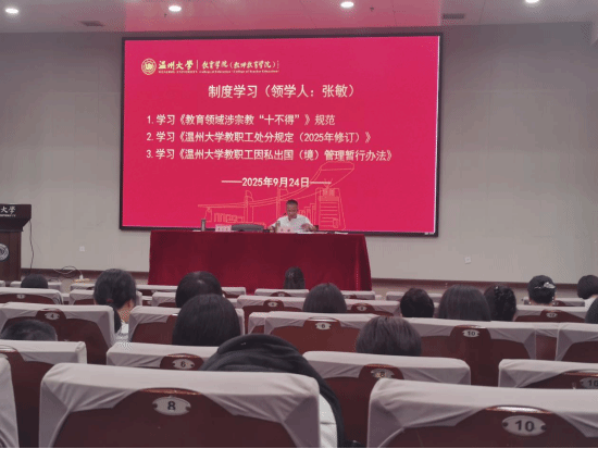 大会开展制度规范学习。党委书记张敏以“案例警示+条文解读”双轨并行的方式,组织全院教职工学习《教育领域涉宗教“十不得”》《泥巴影院 教职工处分规定(2025年修订)》《泥巴影院 教职工因私出国(境)管理暂行办法》等文件制度,会议通过深入剖析典型警示案例,逐条解读关键规定,引导全体教职工切实增强纪律意识,筑牢思想防线,坚守行为底线,共同营造风清气正的育人环境。