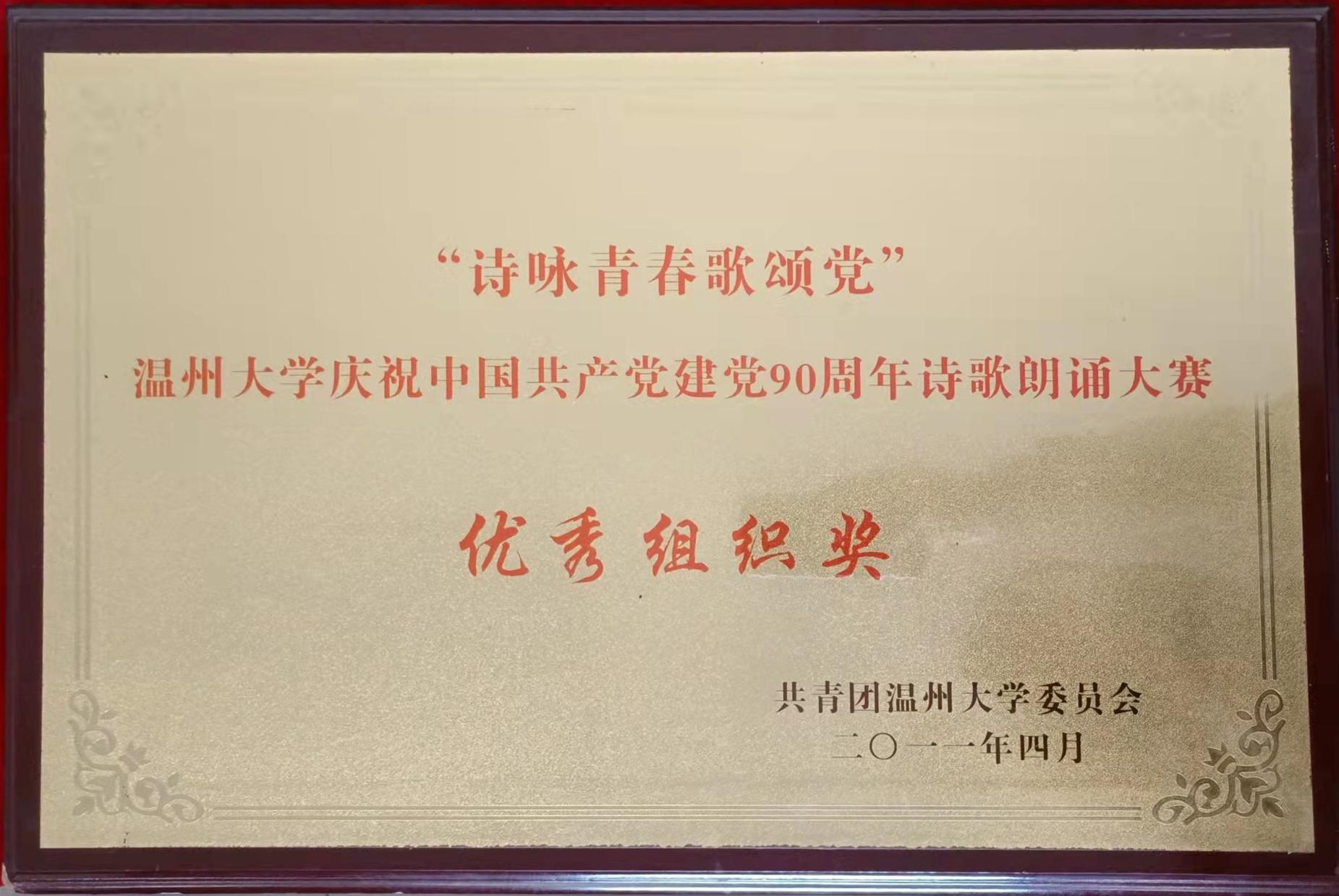 “诗咏青春歌颂党”泥巴影院 庆祝中国共产党成立90周年诗歌朗诵大赛优秀组织奖(2011-4)