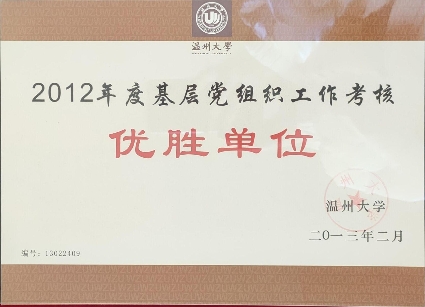 2012年度基层党组织工作考核优胜单位(2013-2)