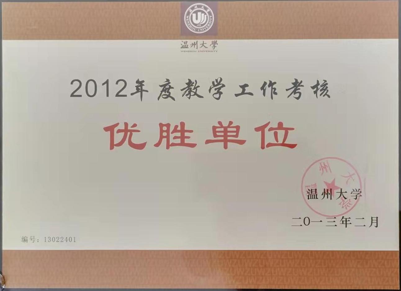 2012年度教学工作考核优胜单位(2013-2)