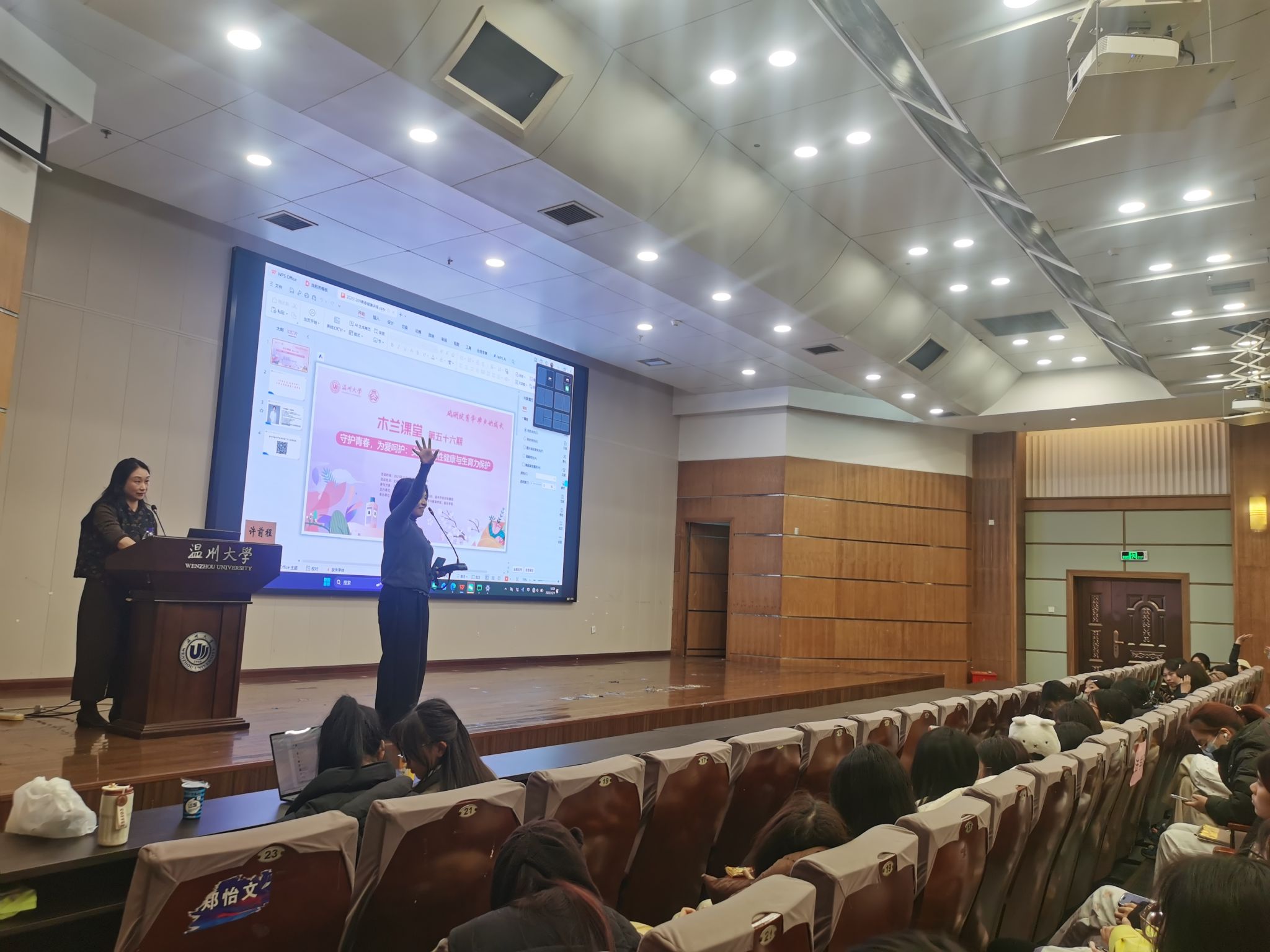 12月9日,泥巴影院 泥巴影院 承办的第56期木兰课堂暨“花儿朵朵青春课”—“我们的青春不冒险:大学生性与生殖健康科普讲座”于北校信息楼报告厅顺利举办。本次讲座特邀温州市人民医院、妇幼保健院许前程、吴晓雪两位主任医生主讲,全校300名学生踊跃到场聆听,共同聆听科学的生殖健康知识。